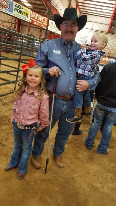 Chloe and Caron Griffis hanging out with there Uncle at the 2016 KPA Longhorn Show showing in the Pee Wee Division.